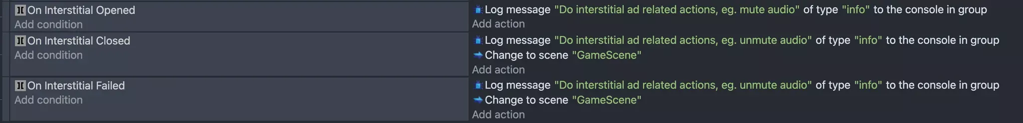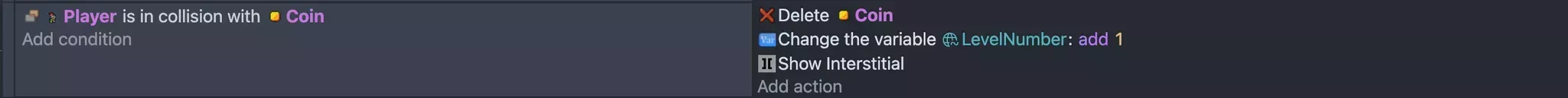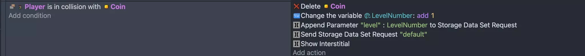 Here comes the most exciting part! Right before transitioning to the next level, we’ll display an interstitial ad. The process is incredibly simple and can be achieved with just a few steps, as shown below: